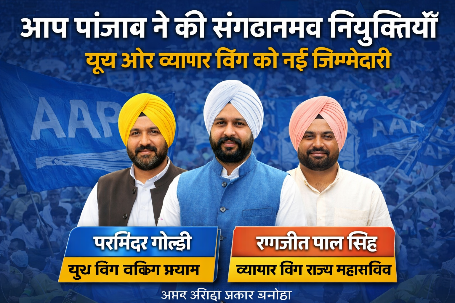 आप पंजाब ने संगठनात्मक नियुक्तियों की घोषणा, यूथ और व्यापार विंग को मिली नई जिम्मेदारी