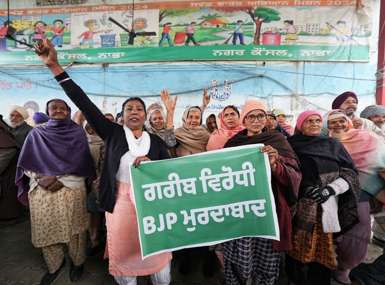 आम आदमी पार्टी (आप) ने भाजपा की अगुवाई वाली केंद्र सरकार पर महात्मा गांधी राष्ट्रीय ग्रामीण रोजगार गारंटी योजना (मनरेगा) को योजनाबद्ध तरीके से कमजोर करने का आरोप लगाते हुए नाभा के पटियाला गेट पर जोरदार विरोध प्रदर्शन किया। इस प्रदर्शन में सैकड़ों मनरेगा मजदूर, पार्टी कार्यकर्ता और नेता शामिल हुए। प्रदर्शन के दौरान केंद्र सरकार के खिलाफ जमकर नारेबाजी की गई और प्रधानमंत्री नरेंद्र मोदी का पुतला फूंका गया।
