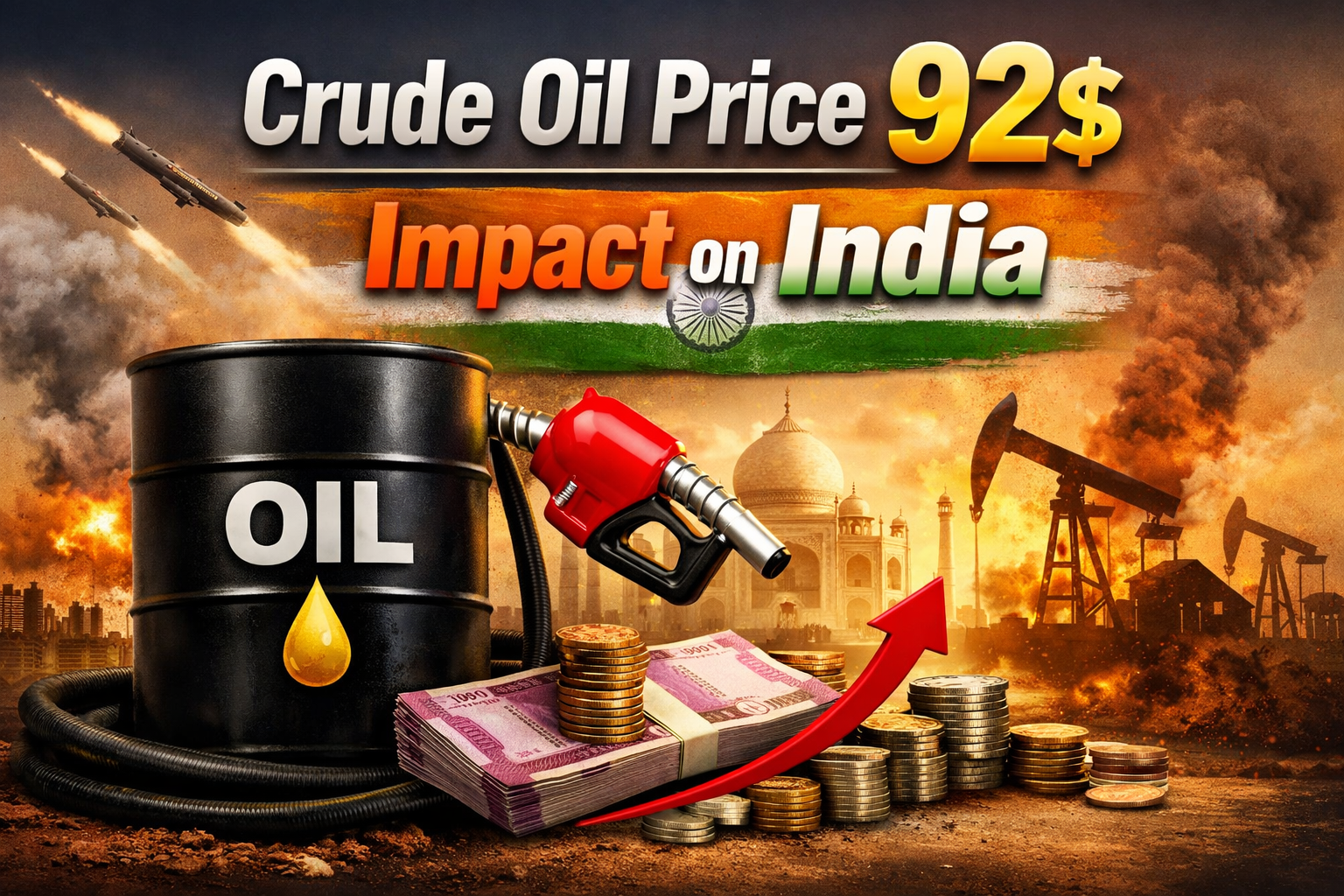 खाड़ी में बढ़ते तनाव का असर: कच्चा तेल 92 डॉलर प्रति बैरल पहुंचा, भारत में महंगाई बढ़ने की आशंका