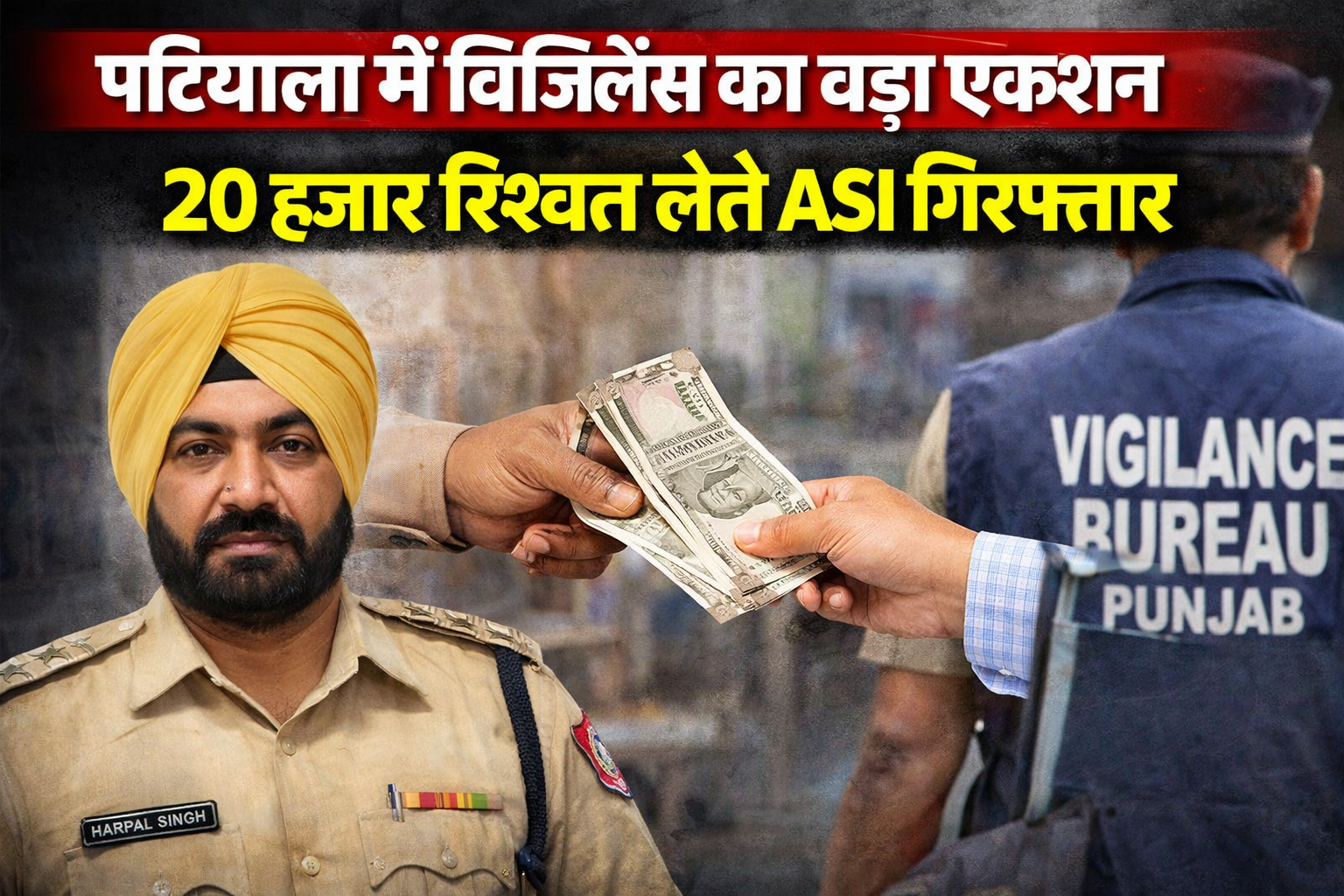 पटियाला में विजिलेंस का बड़ा एक्शन: 20 हजार रिश्वत लेते ASI हरपाल सिंह रंगे हाथ गिरफ्तार