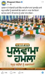 पंजाब के मुख्यमंत्री  Bhagwant Mann ने पुलवामा हमले में शहीद हुए जवानों को श्रद्धांजलि दी।