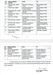 पंजाब पुलिस प्रशासन ने बड़े फेरबदल के तहत पंजाब में डीएसपी रैंक के 12 पुलिस अधिकारियों के तबादले किए हैं। नए आदेशों के अनुसार इन अधिकारियों को विभिन्न नई पोस्टिंग दी गई है, जिससे पुलिस विभाग की कार्यकुशलता और कानून-व्यवस्था बनाए रखने में सहायता मिलेगी।