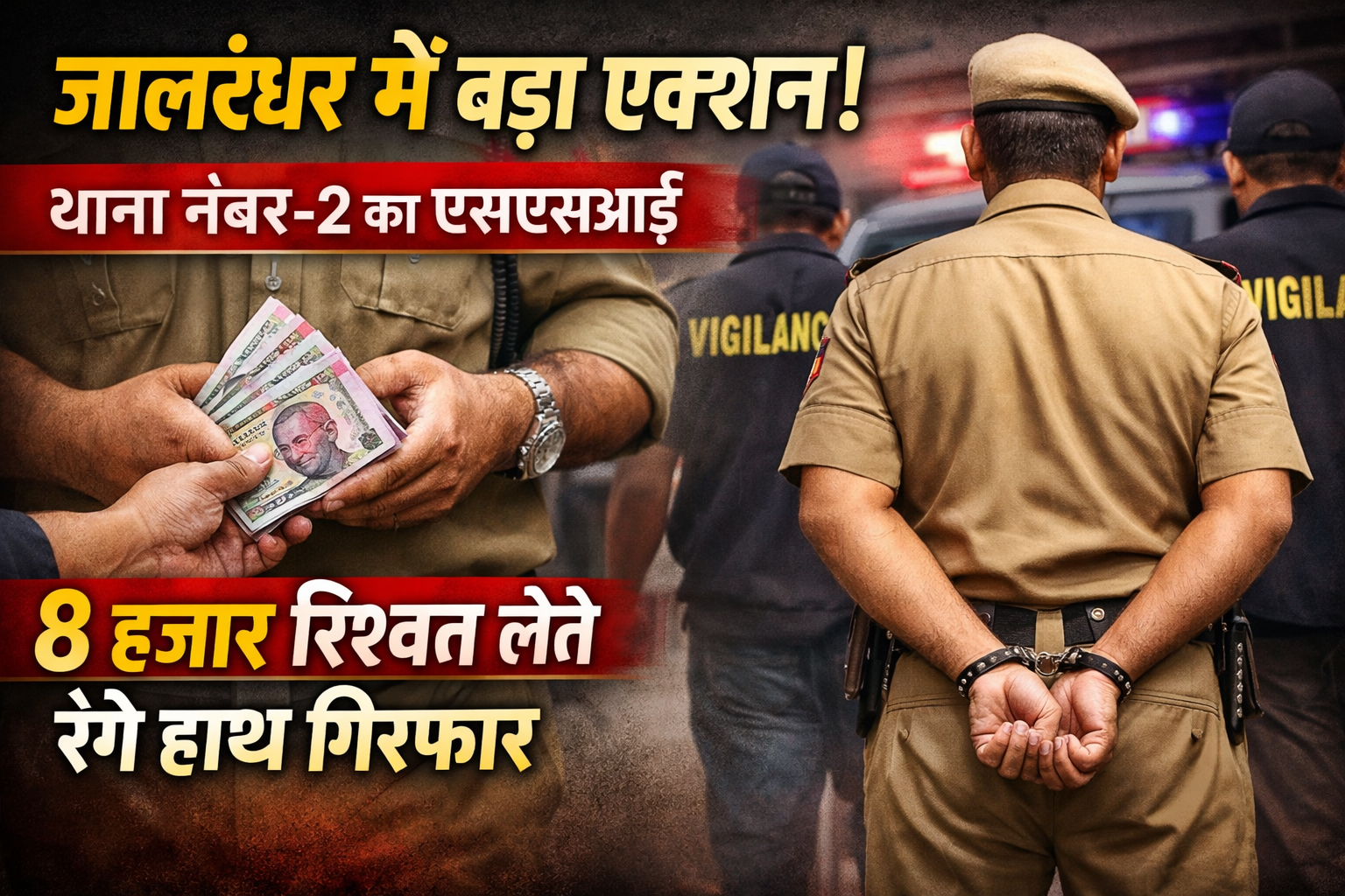 जालंधर में विजिलेंस का बड़ा एक्शन: एसएसआई 8 हजार रुपये रिश्वत लेते रंगे हाथ गिरफ्तार