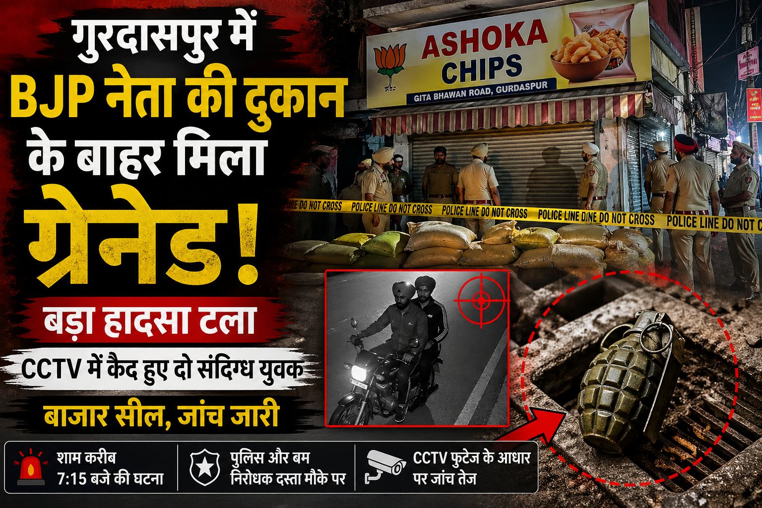 गुरदासपुर में BJP नेता की दुकान के बाहर ग्रेनेड जैसी वस्तु मिलने से सनसनी, टला बड़ा हादसा